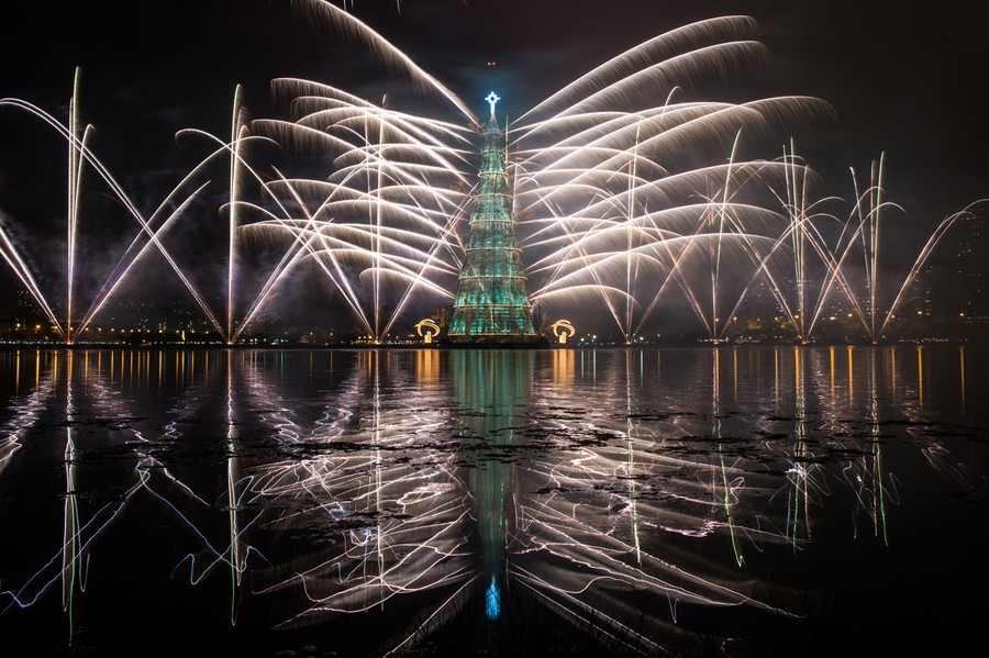 Read moreFireworks light up during the inauguration of an 85 meter-high Christmas tree at Cantagalo park in Rio de Janeiro, Brazil, on November 30, 2013. 3.1 million lights will illuminate the Christmas tree every night until the end of the year. #