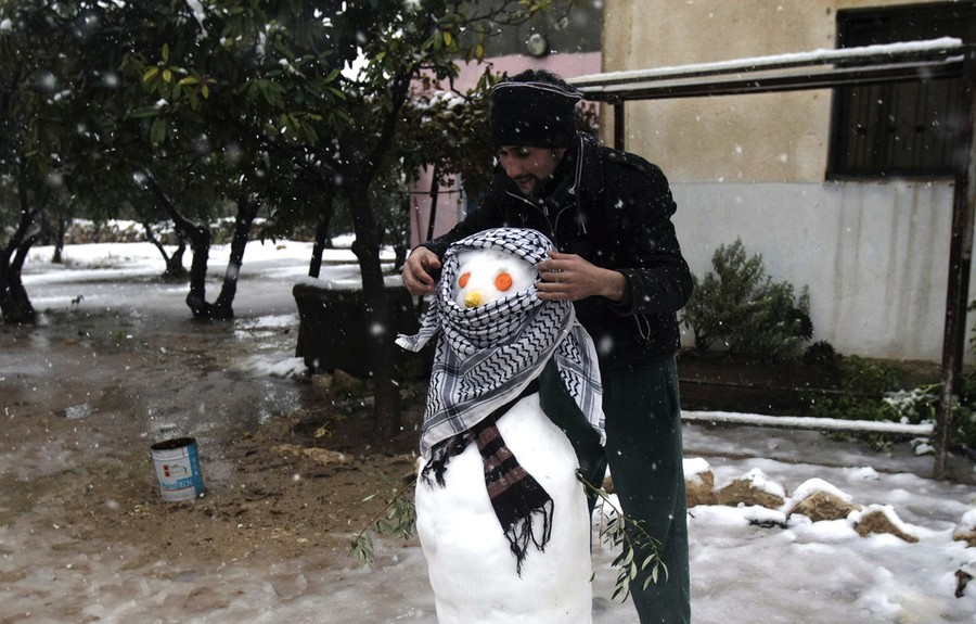 Read moreA Palestinian youth makes a snowman in the West Bank town of Nablus, on December 13, 2013. Early snow has surprised many Israelis and Palestinians as a blustery storm, dubbed Alexa, brought gusty winds, torrential rains and heavy snowfall to parts of the Middle East. #