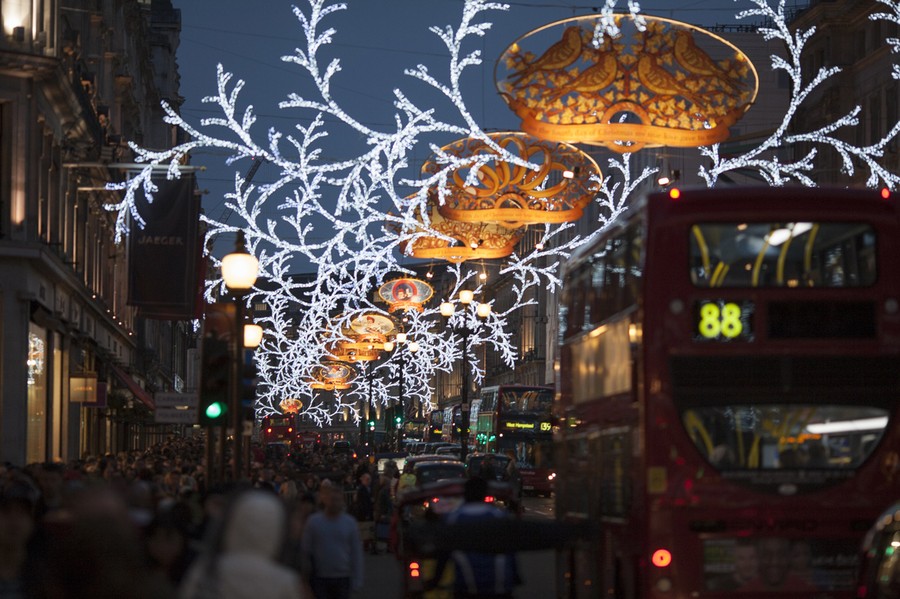 Read moreHordes of Christmas shoppers walk beneath festive lights on Regent Street on December 14, 2013 in London, England. As Christmas Day approaches, London's central shopping districts attempt to lure shoppers into stores with last minute deals in an effort to pull sales away from online outlets. #