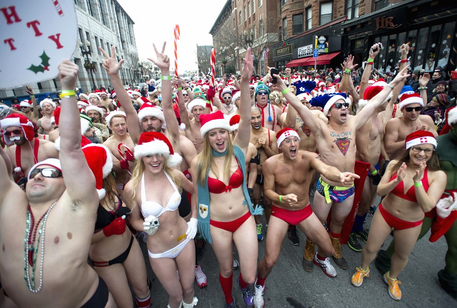 Read moreRunners gather at the start line for the annual "Santa Speedo Run," a charity race through the streets of the Back Bay neighborhood of Boston, Massachusetts, on December 14, 2013. #