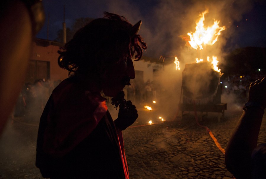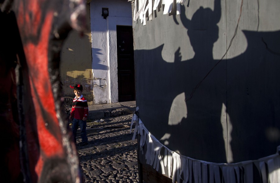 Read moreYoung Matias Arango walks in front of a figure representing the Devil to be burned during the Virgin of the Immaculate Conception celebrations in Antigua, Guatemala, on December 7, 2013. These celebrations mark the beginning of the Christmas Season in Guatemala. #