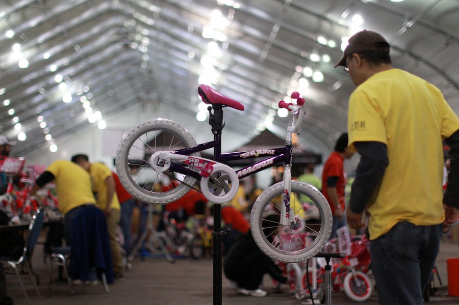 Read moreVolunteers construct bikes for TurningWheels for Kids' Big Bike Build at the San Jose Convention Center in San Jose, California, on December 7, 2013. Silicon Valley's Big Bike Build brings out 1,000 corporate volunteers to build over 2,500 bikes as holiday gifts for needy kids. #