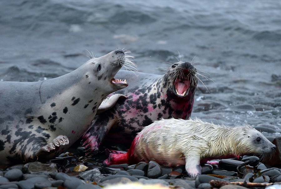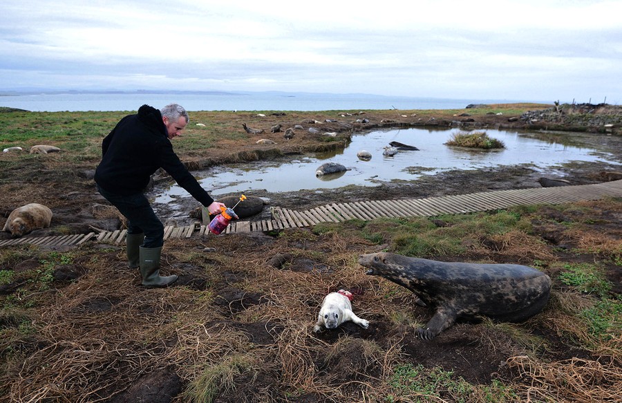 Read moreHead ranger David Steel sprays a seal pup with pigment so that it can be counted as part of a census on Brownsman Island, part of the Farne Islands, on November 18, 2013. #