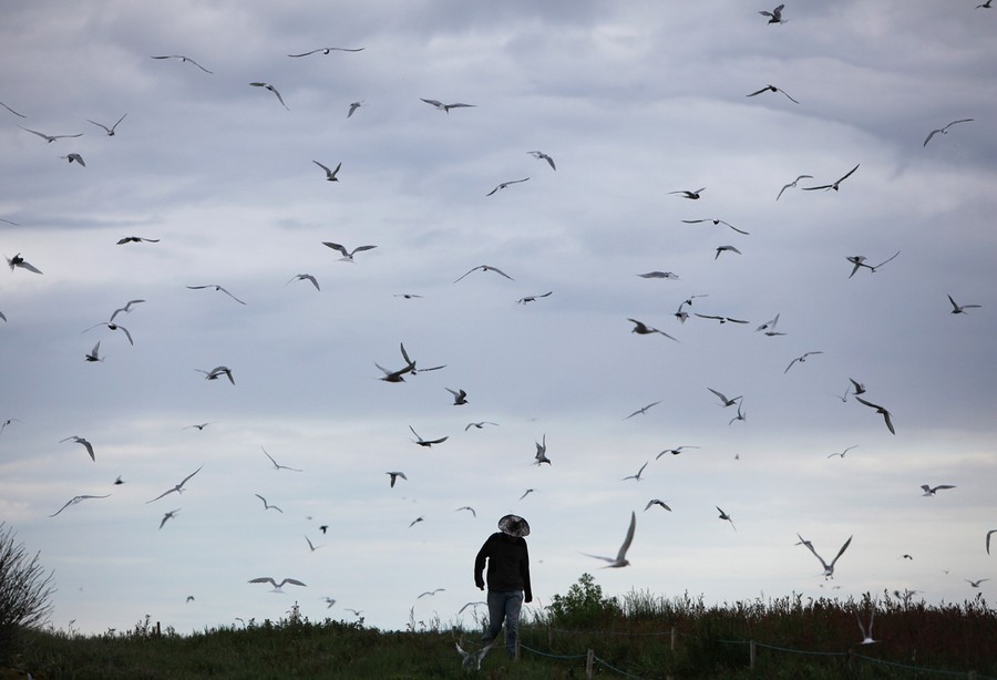 Read moreA warden walks through a breeding colony of Arctic Terns on June 24, 2011 on Inner Farne, England. Visitors to the Farne Islands are pre-warned and advised to wear hats to protect themselves from the Terns who will dive down and attack anyone they perceive as a threat to their nest. #