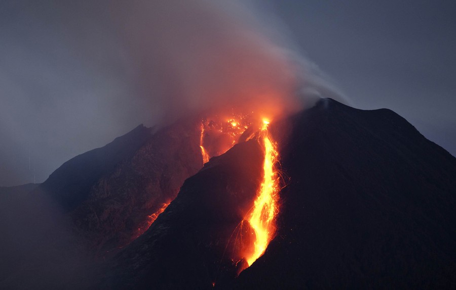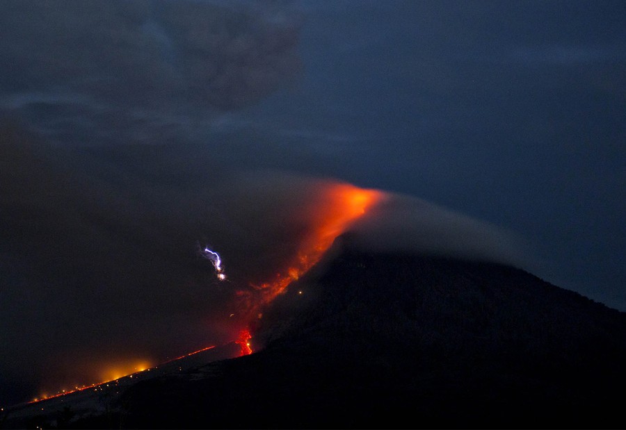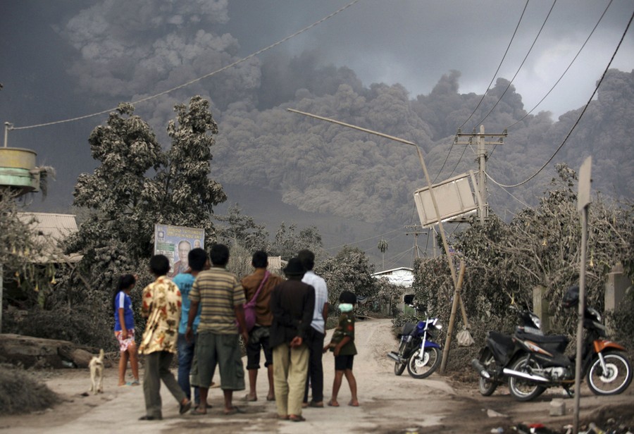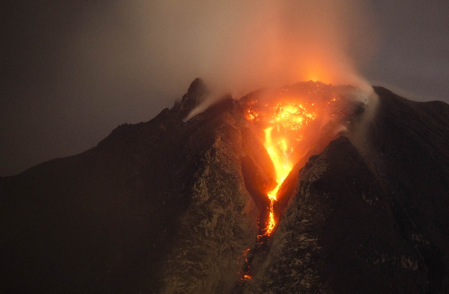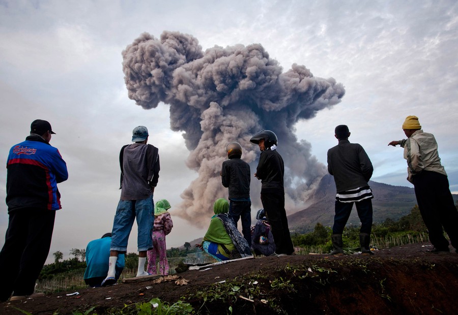 Mount Sinabung, in Indonesia's North Sumatra province, has been erupting sporadically since last September, spewing massive clouds of superheated gas and ash into the sky and down its slopes in deadly pyroclastic flows. The most recent series of eruptions began January 4, with hundreds of eruptions recorded in the days since. Further evacuations have been ordered, with more than 20,000 people now displaced. Gathered here are recent images from the region and of those affected.