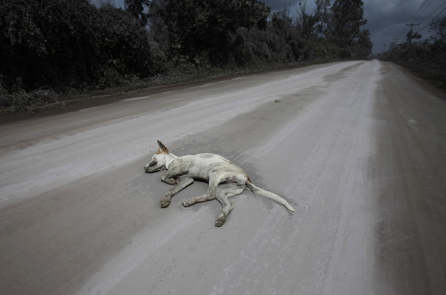 Read moreA cat sits in an area covered by ash as following a further eruption of the Mount Sinabung in Sebintun village on January 9, 2014 in Karo District, North Sumatra, Indonesia. #