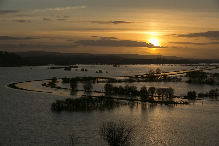 Read moreThe sun sets over flooded fields surrounding the River Tone that has burst its banks on the Somerset Levels, viewed from Windmill Hill, in Stoke-St-Gregory, on Febuary 2, 2014. #
