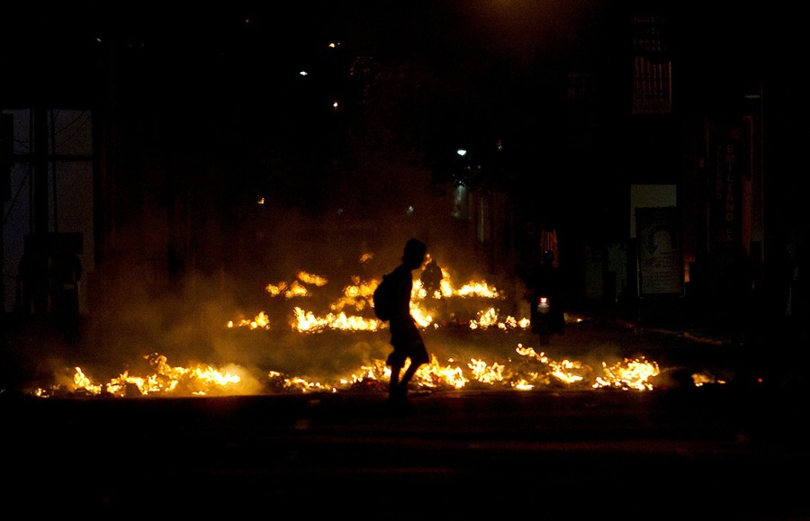 Read moreA demonstrator walks past burning barricades during a protest in Caracas, on February 14, 2014. Demonstrators were protesting the earlier killings of two university students who were shot in different incidents following an anti-government protest. Venezuelan security forces backed by water tanks and tear gas dispersed large groups of anti-government demonstrators who blocked Caracas' main highway. #