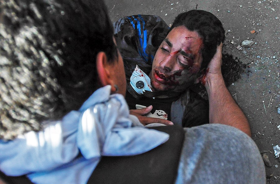 Read moreBassil DaCosta, who was shot in the head, is carried away after clashes broke out between opposition protesters, security forces and pro-government supporters during a protest in Caracas, on February 12, 2014. Armed members of a pro-government vigilante group arrived on motorcycles and began firing on more than 100 anti-Maduro student protesters clashing with security forces. #