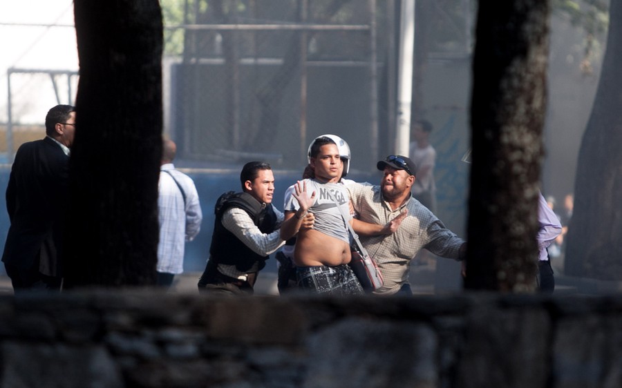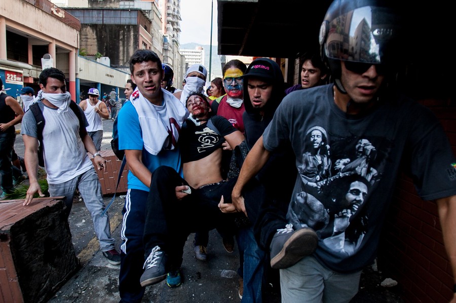 Read moreStudent Bassil DaCosta is helped during an opposition demonstration against President Maduro, in Caracas, on February 12, 2014. DaCosta and a unidentified member of the pro-government group Juan Montoya were shot dead. #