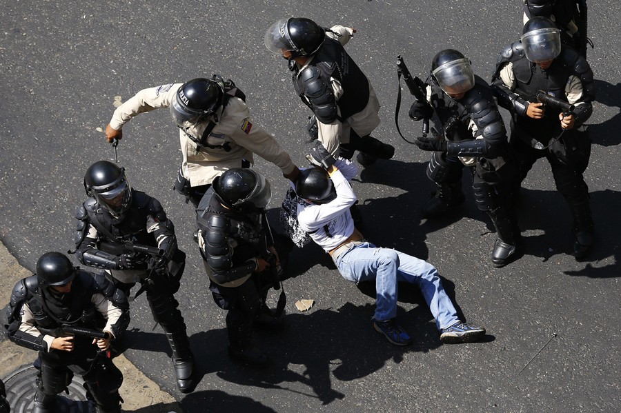 Read morePlainclothes and uniformed police officers detain a protester after clashes broke out between opposition members, security forces and pro-government supporters in Caracas, on February 12, 2014. #