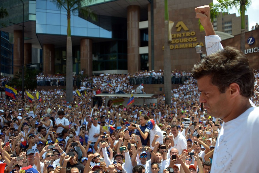 Read moreLeopoldo Lopez, an ardent opponent of Venezuela's socialist government, facing an arrest warrant after President Nicolas Maduro ordered his arrest on charges of homicide and inciting violence, is surrounded by supporters as he stands at the monument of Cuba's most important independence-era hero, Jose Marti, before turning himself in to authorities during a demonstration in Caracas, on February 18, 2014. #