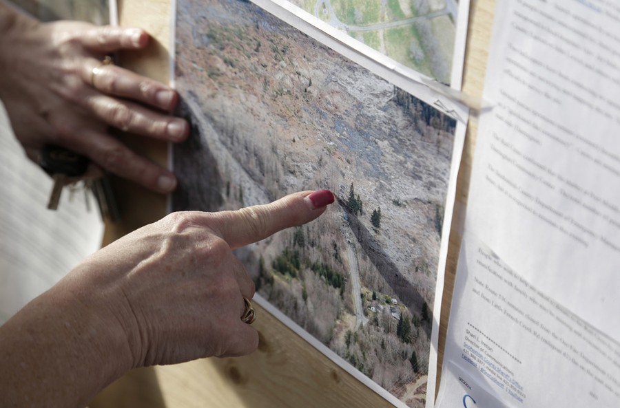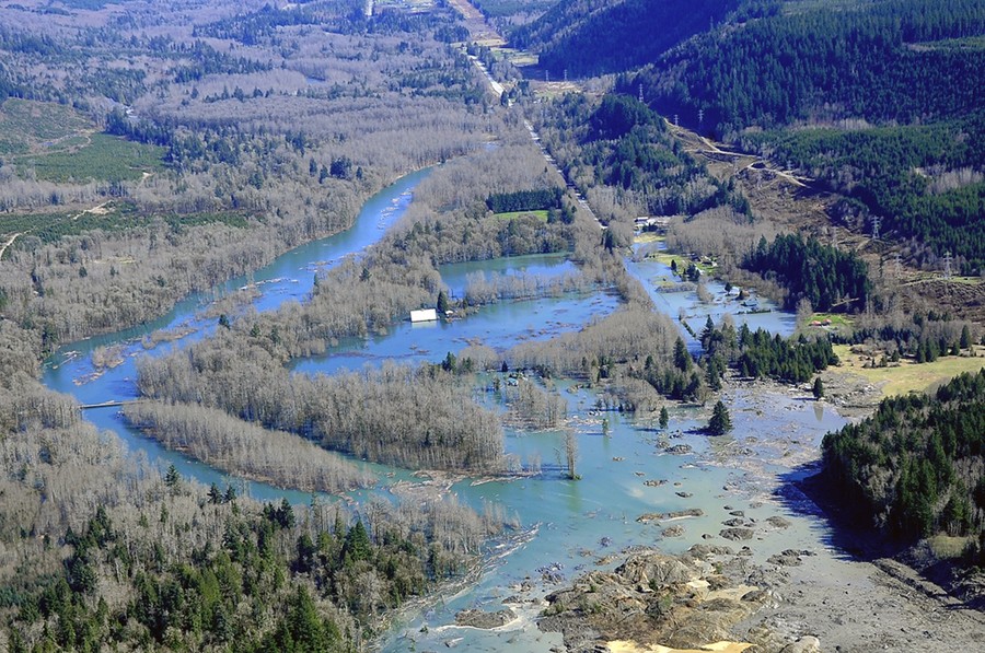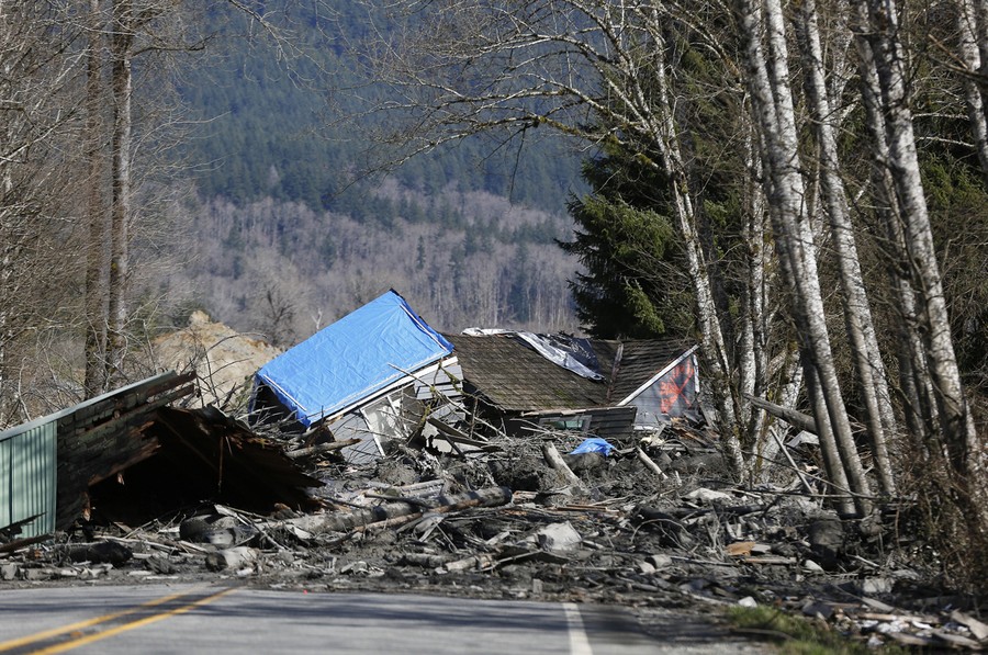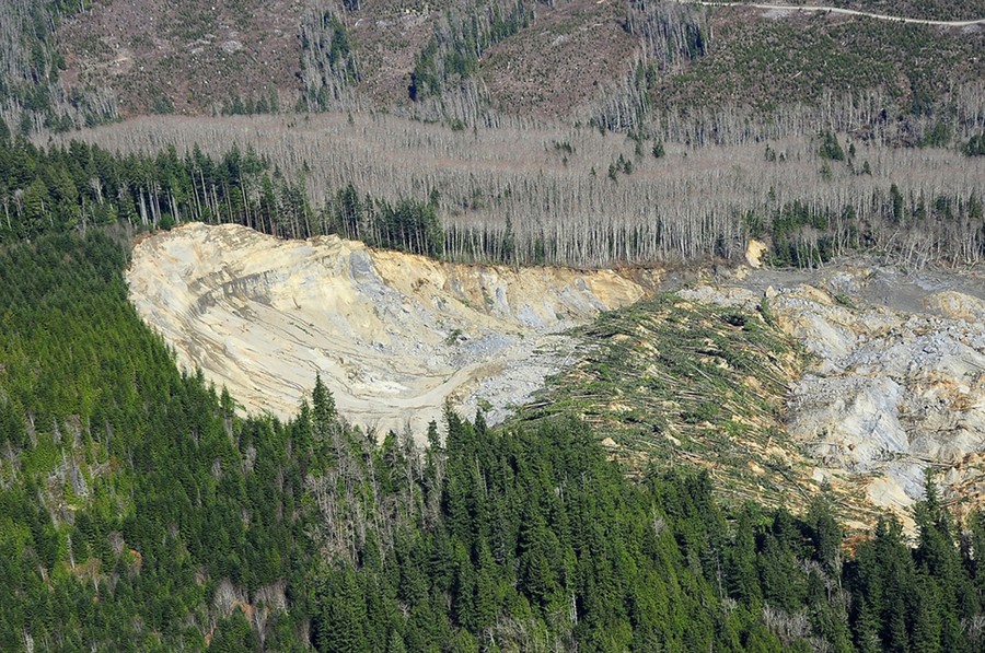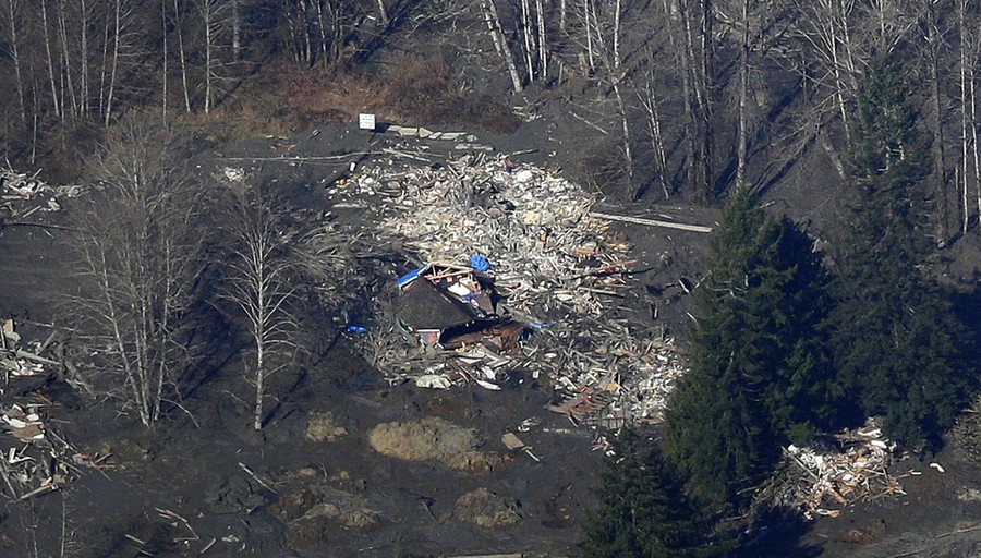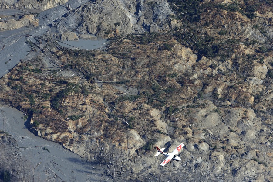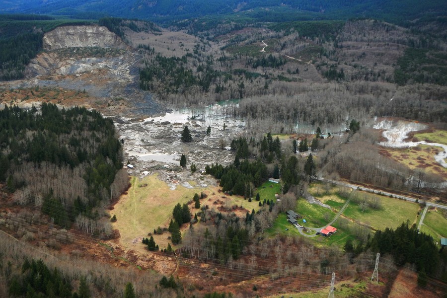 Last Saturday, at 10:45 am, part of a hillside above Oso, Washington -- known by some locals as "Slide Hill" -- collapsed after weeks of heavy rain, sending a wall of mud and debris across a small valley of the Stillaguamish River. The neighborhood below the hillside was destroyed, and more than 100 properties damaged, resulting in at least 14 verified deaths -- a number that may grow larger, as the list of missing has grown to 176. Efforts to rescue victims have been slow, as the surrounding hills remain dangerously unstable and the affected area is so large. Rescue workers continued their search throughout last night.