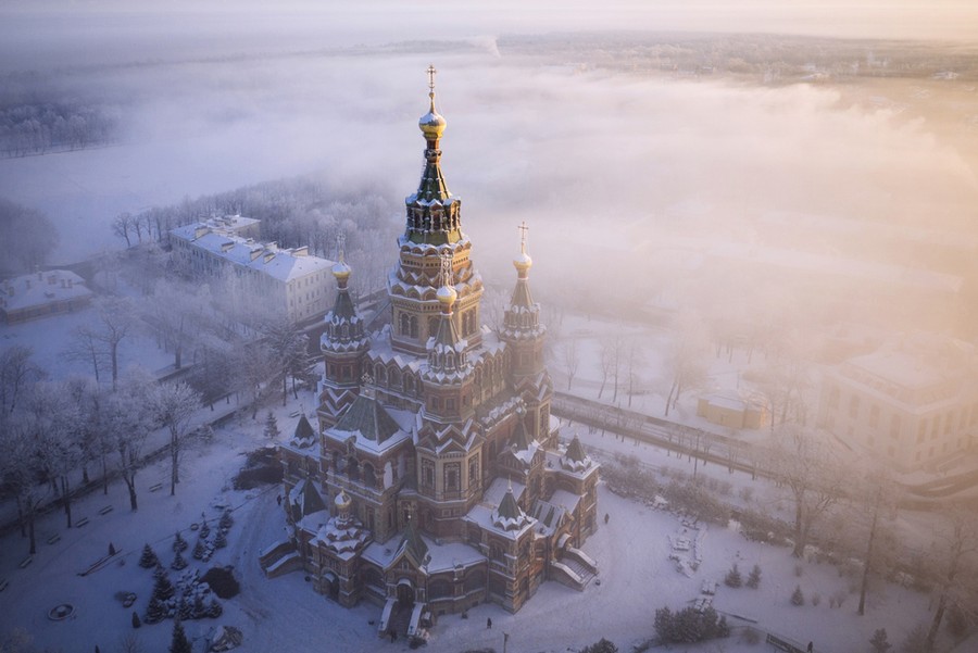Recently, photographer Amos Chapple spent some time in Saint Petersburg, Russia's second-largest city. He used a small drone to lift his camera high above the cathedrals and fortresses, capturing some amazing aerial photos. Chapple: "There's a legend in Russia that Saint Petersburg was constructed in the blue heavens and lowered in one piece into the marshland, 'for how otherwise could a city so beautiful exist in a region so bleak.'" Chapple, has previously showed us Stalin's Rope Roads, and took us on a trip to Turkmenistan.