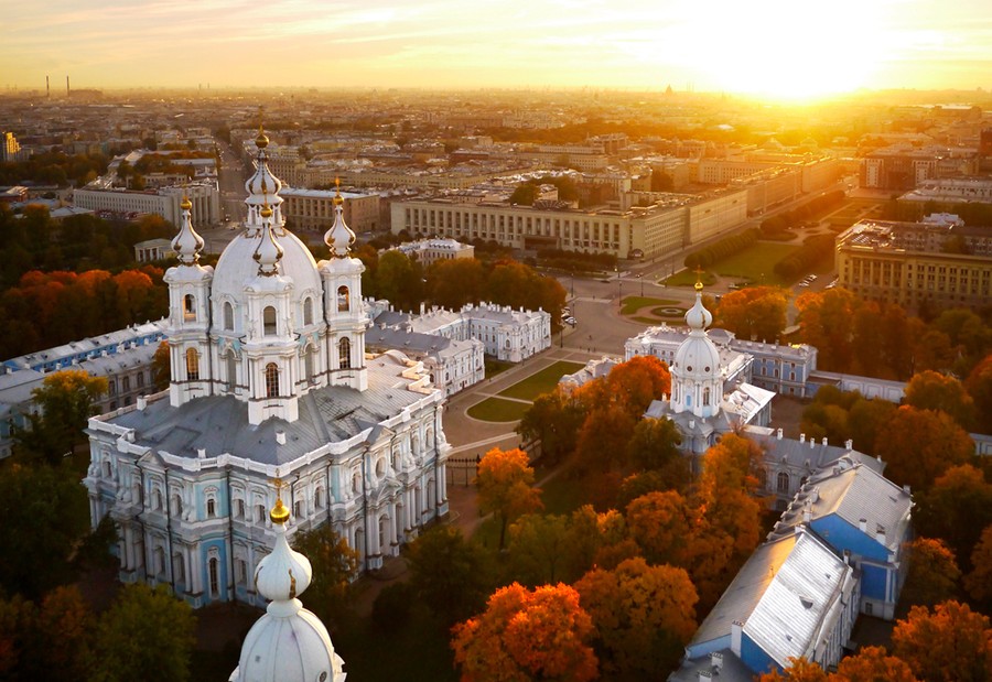 Read moreSmolny Convent at sunset. The building once housed a finishing school for Russian noblewomen. Delicate young graduates were known to have "some education.. strictly ceremonious manners" and a "thirst for expressing their feelings." #