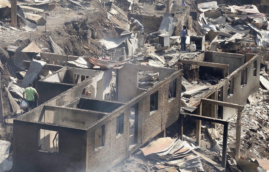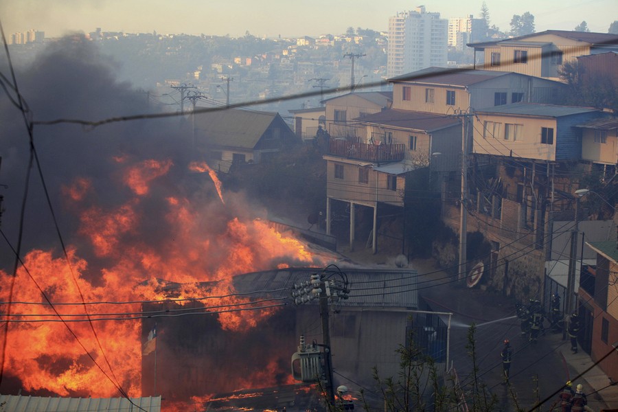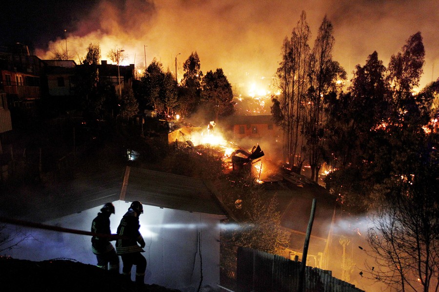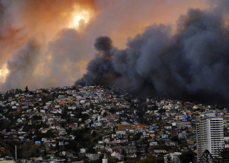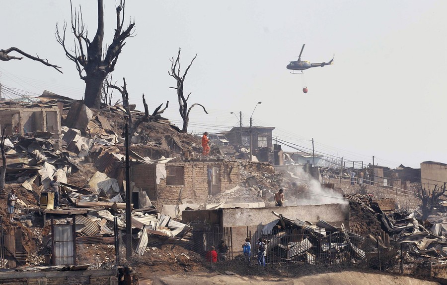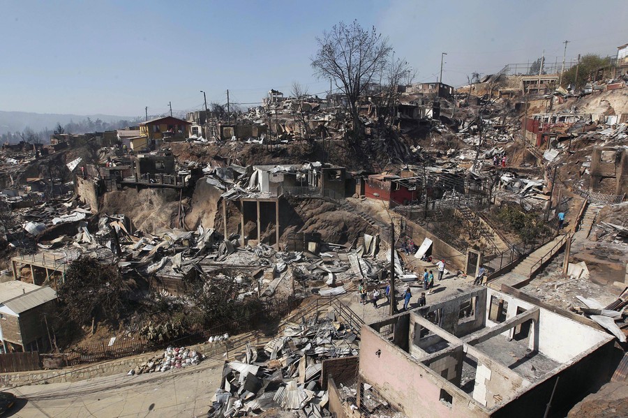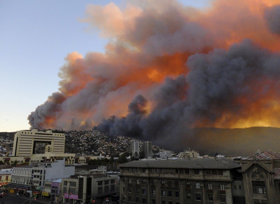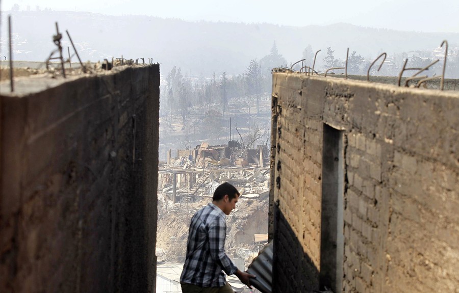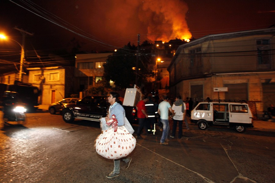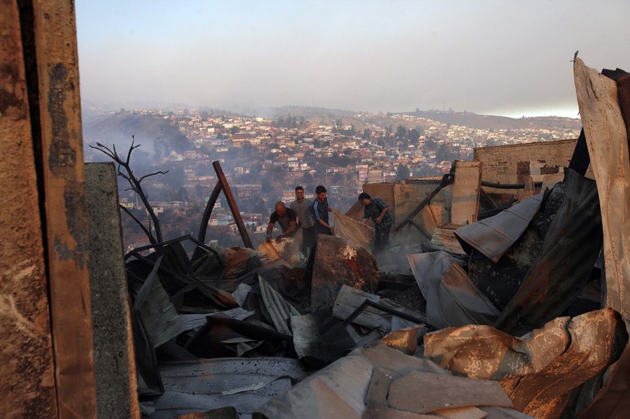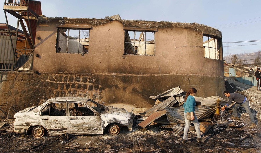 In the port city of Valparaiso, Chile, a massive fire started late Saturday. Fueled by strong winds, flames swept across hilly residential areas, destroying more than 2,000 houses and killing at least 12. Firefighters battled the blaze throughout the weekend and are still extinguishing isolated hot spots. Today, some Valparaiso residents are being allowed to return to their homes to assess the damage, recover what they can, and plan their next steps.