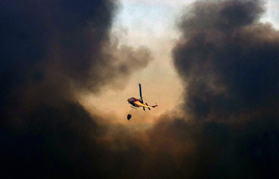 Read moreA helicopter assists after a fire burned several neighbourhoods in the hills of Valparaiso on April 13, 2014. #