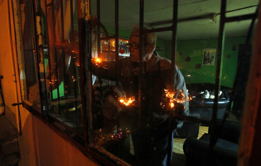 Read moreA resident looks though his window as a fire, reflected in the glass, burns through several neighborhoods in the hills in Valparaiso on April 12, 2014. #