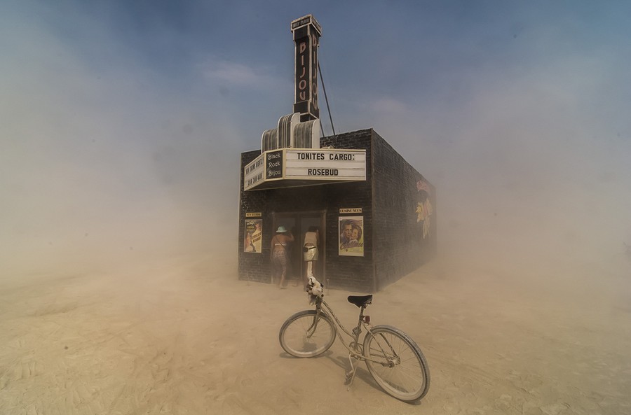 Read moreFinalist, Americana category. Dust swirls around citizens of Black Rock City as they peek into the "Black Rock Bijou Theatre," an art installation at the 2013 Burning Man festival. Photographed by Mark Kaplan of Carrollton, Texas. #