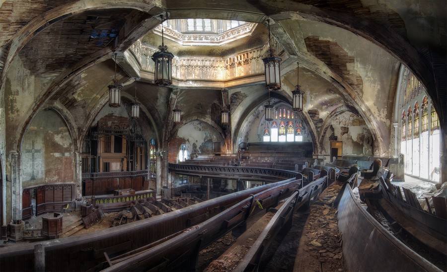 Read moreFinalist, Altered Images category. Photographer Michael Frank says what strikes him most about this image of the abandoned Woodward Avenue Presbyterian Church in Detroit, Michigan, is, "the sense of stillness. A stillness marked by anticipation, not unlike the stillness felt in a theater between acts." #