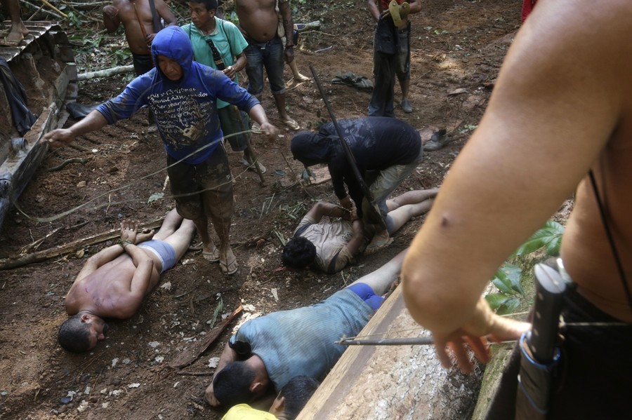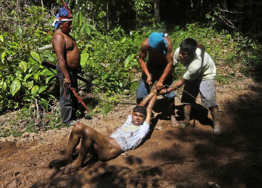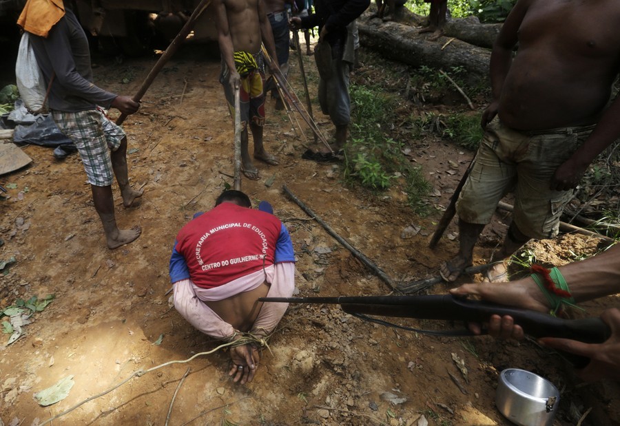 Read moreA Ka'apor Indian warrior chases a logger who tried to escape after he was captured during a jungle expedition to find and expel loggers from the Alto Turiacu Indian territory, near the Centro do Guilherme municipality in the northeast of Brazil's Maranhao state in the Amazon basin, on August 7, 2014. Tired of what they say is a lack of sufficient government assistance in keeping loggers off their land, the Ka'apor Indians, who along with four other tribes are the legal inhabitants and caretakers of the territory, have sent their warriors out to expel all loggers they find and set up monitoring camps in the areas that are being illegally exploited. #