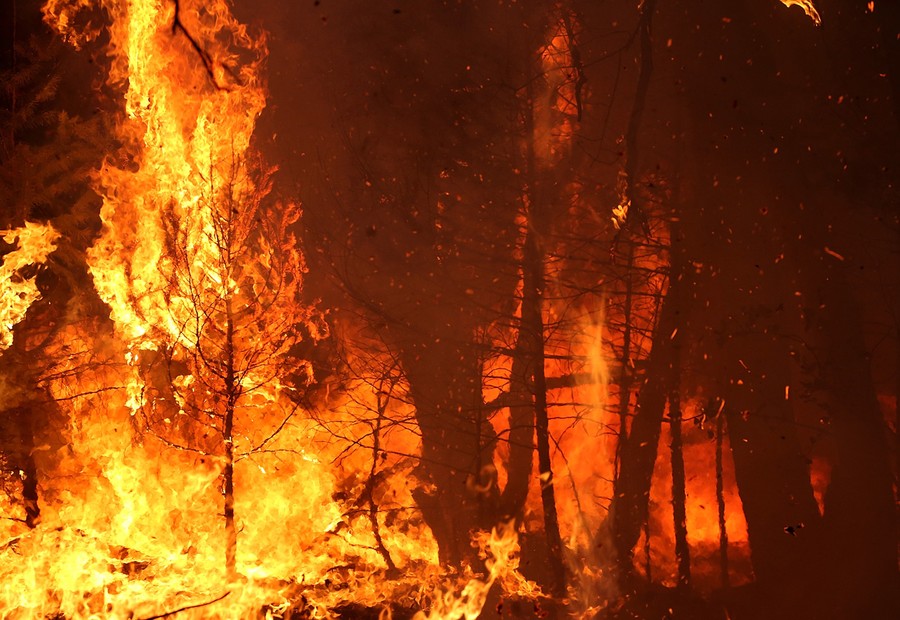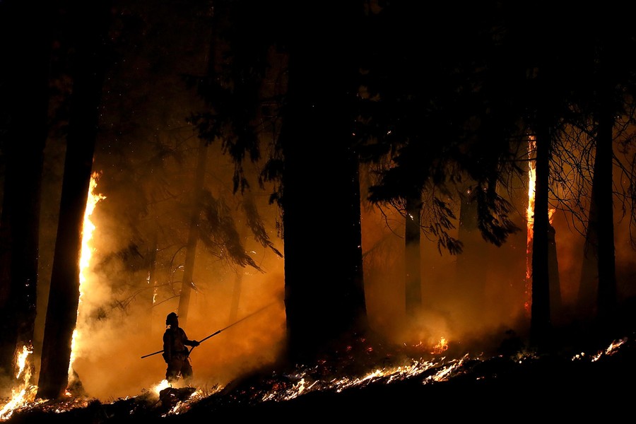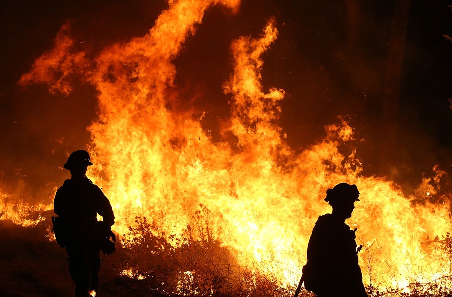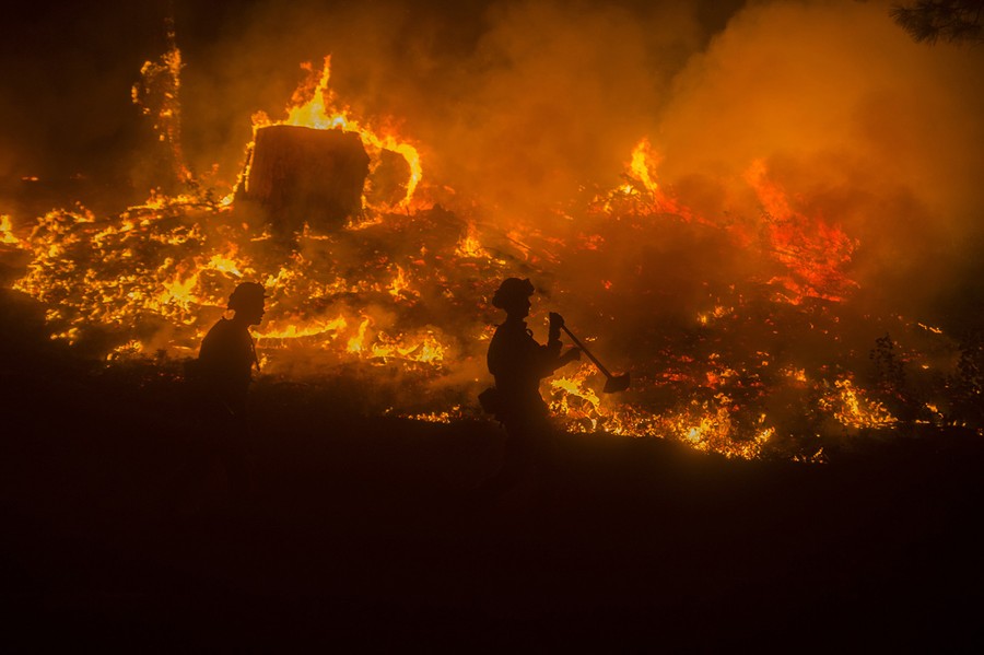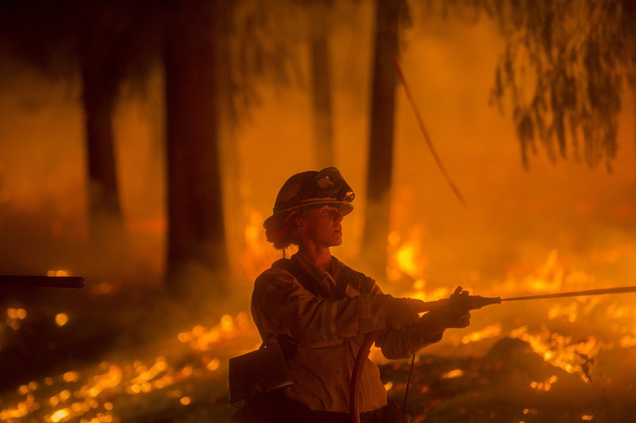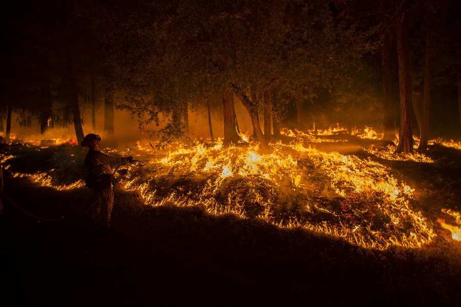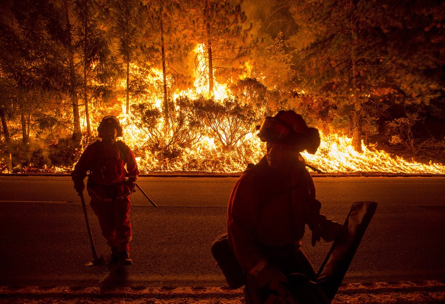 The King Fire started about five days ago, in a California canyon 60 miles east of Sacramento, and has since burned an estimated 70,000 acres of steep forested terrain. The wildfire is one of nearly a dozen major blazes being fought across the state right now, driven in part by the ongoing severe drought conditions. The King Fire continues to grow (as of now, it is only 5 percent contained) and has prompted the evacuation of 2,000 residents so far. Firefighters plan to strengthen their control lines and protect as many of the 1,600 nearby homes as they can over the coming days.