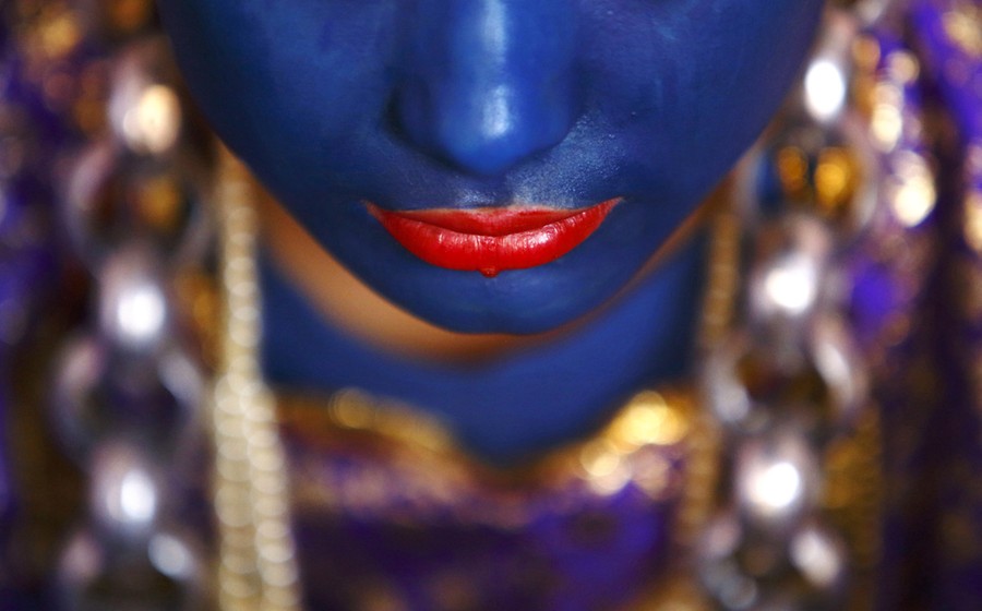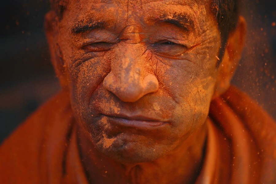 Read moreA devotee whose face is smeared with vermillion powder takes part in the "Sindoor Jatra" vermillion powder festival at Thimi, near Kathmandu, on April 15, 2014. The festival is celebrated by singing, dancing, playing traditional instruments, carrying chariots of various deities around the town, offering prayers and throwing vermilion powder over each other to mark the Nepalese New Year and the beginning of spring season in the country. #