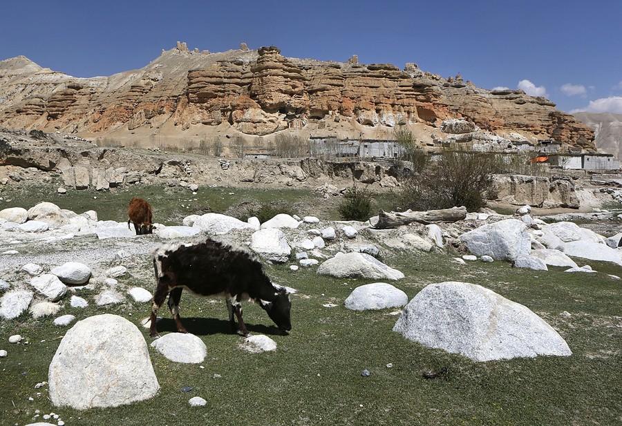 Read moreCows graze in a field in front of Chosher village and cliffs on May 23, 2014 in Chosher, Nepal. Humans have lived in caves carved out of the Mustang cliffsides for thousands of years. Today, however, only a few of the caves are still inhabited, usually by the destitute or elderly. #