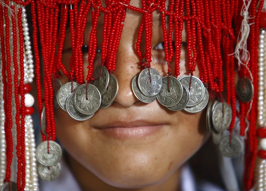 Read moreA Newari woman, with her lips and face painted to depict a deity, sits inside a house before she takes part in a parade to celebrate the Yamari Puni festival in Kathmandu on December 17, 2013. The name "Yamari Puni" originates from Newari words, "ya" meaning like, "mari" meaning delicacy and "puni" meaning full moon. People from the Newar community celebrate the festival once a year, in the day and at night during a full moon, by performing traditional songs and dance. #