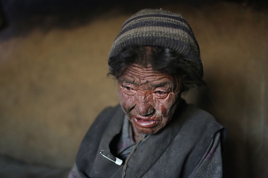 Read morePema Dolma, 78, cries after describing her loneliness and feelings of abandonment in her cliffside home on May 23, 2014 in Chosher, Nepal. Dolma says she has been abandoned by her children, and, since the death of her husband 6 years ago, she has had to live on a stipend from the former Prince of Lo and handouts from her neighbors. #