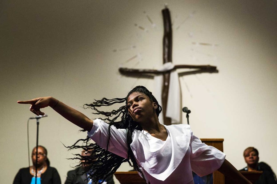 Read moreA woman dances during church services at the Greater St Mark Family Church as the community discusses reactions to the shooting of teenager Michael Brown in Ferguson, Missouri, on August 17, 2014. #
