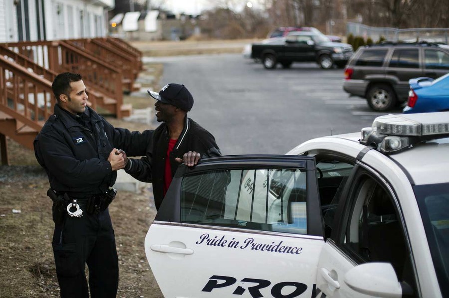 Read moreProvidence police officer Taylor Britto is thanked for taking an inebriated man home while on patrol in the Olneyville neighborhood of Providence, Rhode Island, on March 20, 2014. Public pressure, federal funding, data-driven policing and greater community organization are all prompting more experimentation around the U.S. with new ways to get at the roots of urban poverty and crime. #