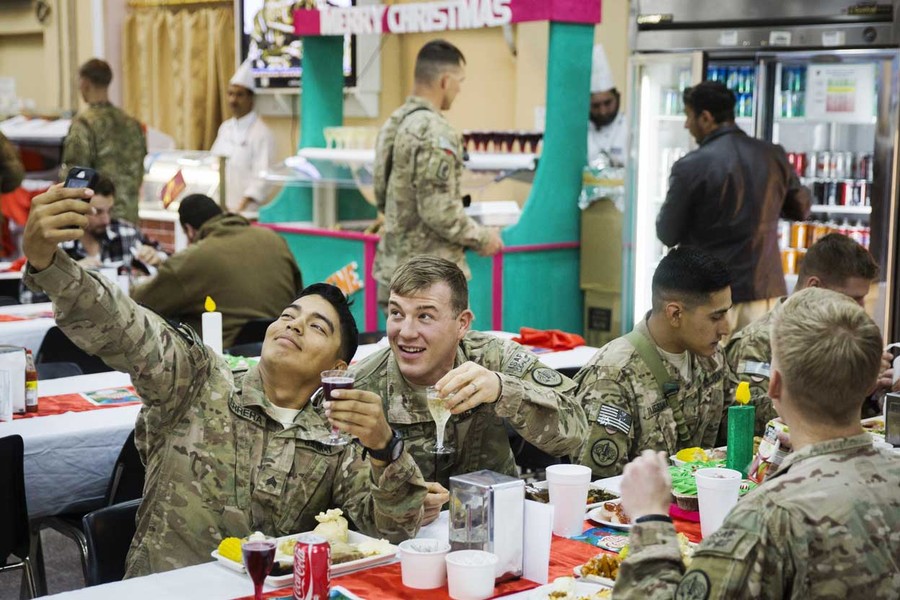 Read moreU.S. soldiers from the 3rd Cavalry Regiment pose for a photograph while eating a Christmas day lunch at forward operating base Gamberi, Afghanistan, on December 25, 2014. #