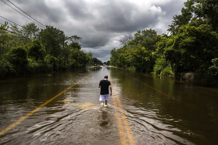 Read moreA man walks down a flooded road in Islip, New York, on August 13, 2014. More than a foot of rain hit parts of New York's Long Island, enough to set a preliminary state record, triggering flash floods and swamping cars on major roads that were turned into rivers during the morning rush hour. #