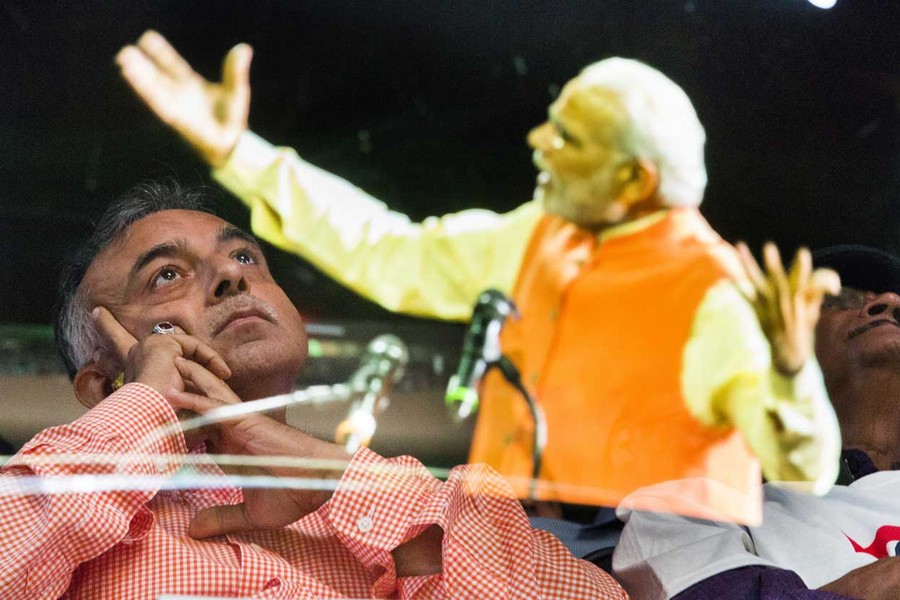 Read moreIndia's Prime Minister Narendra Modi is reflected on a pane of glass in front of spectators as he speaks at Madison Square Garden in New York, during his visit to the United States, on September 28, 2014. #