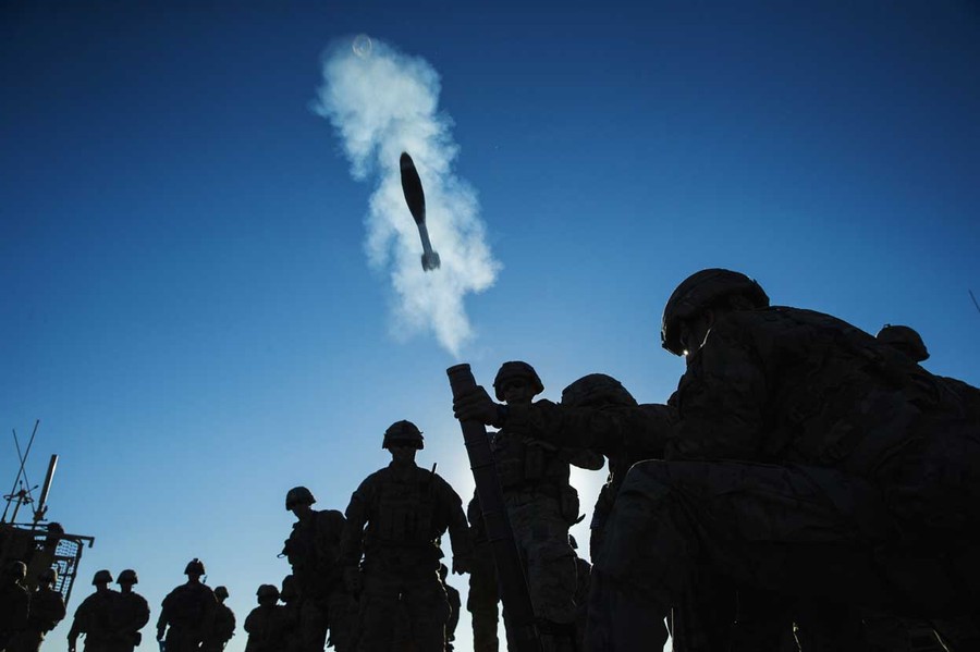 Read moreA mortar flies out of a tube during a mortar exercise for U.S. soldiers in Dragon Company of the 3rd Cavalry Regiment near forward operating base Gamberi on December 26, 2014. #