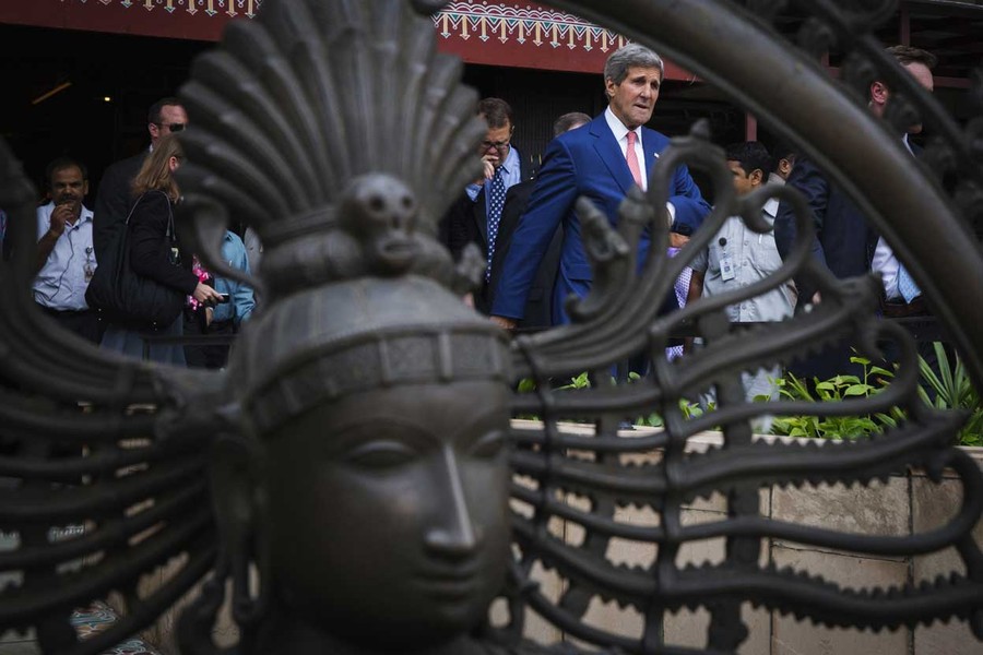 Read moreU.S. Secretary of State John Kerry walks past a statue after a visit to the Central Cottage Industries Emporium marketplace in New Delhi, India, on July 31, 2014. The visit by Kerry to India was his first following the resounding election win of Prime Minister Narendra Modi in May. #