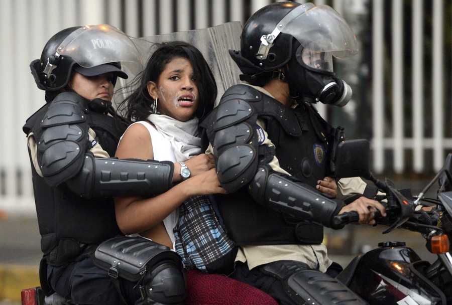 Read moreAn anti-government activist is arrested by national police during a protest against Venezuela President Nicolas Maduro government in Caracas on March 13, 2014. More than 28 people were killed and 350 injured in anti-government protests rocking Venezuela, the country's top prosecutor said, lamenting an atmosphere of "violence and chaos". #