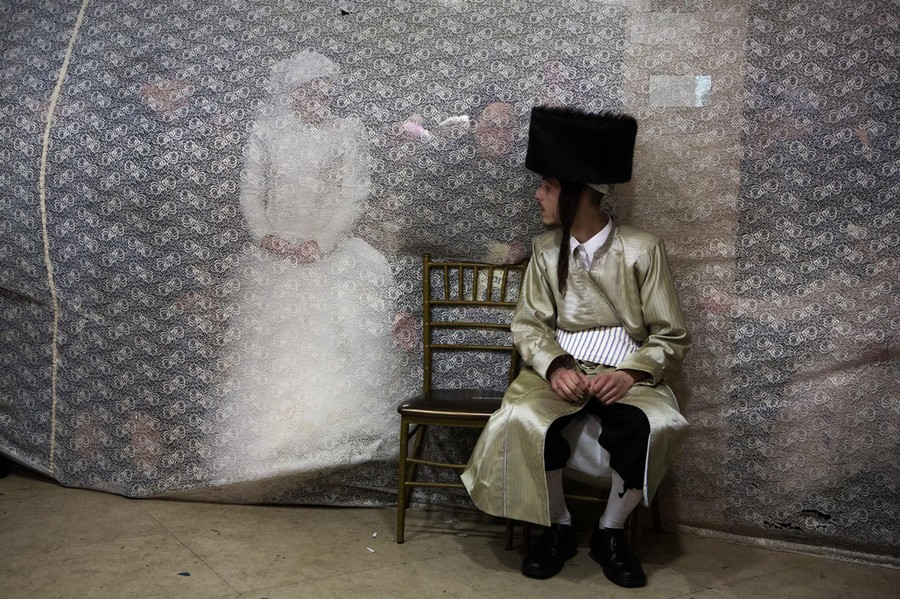 Read moreJewish bride Rivka Hannah (Hofman) looks at her groom Aharon Krois from behind a curtain during the Mitzvah Tans dance ritual following their wedding in an ultra-orthodox neighborhood of Jerusalem on February 18, 2014. During the Mitzvah Tans dance ritual the bride will dance with members of the community, family and with her groom at the end of the wedding ceremony. #