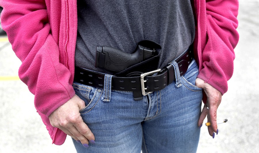 Read moreGloria Lincoln-Thompson carries her 9mm Smith & Wesson pistol in her waistband during a rally in support of the Michigan Open Carry gun law in Romulus, Michigan, on April 27, 2014. #