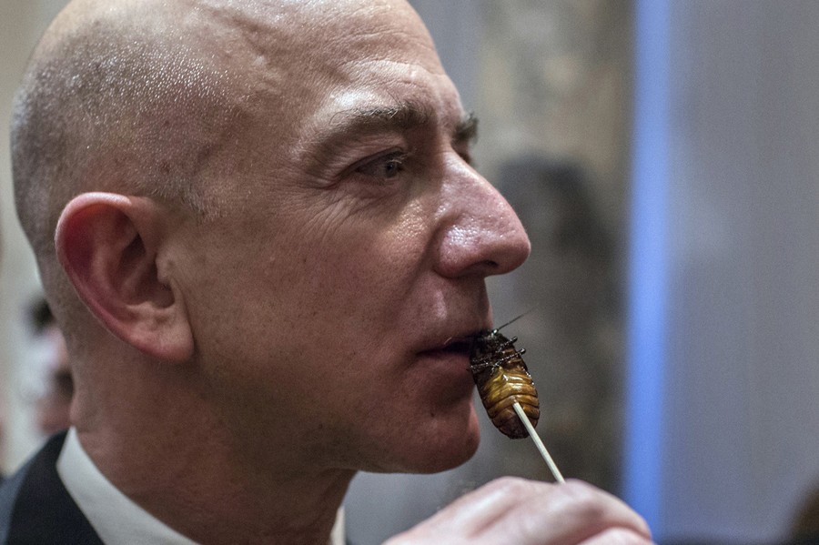 Read moreAmazon Chairman and CEO Jeff Bezos samples cooked cockroach at the 110th Explorers Club Annual Dinner at the Waldorf Astoria in New York, on March 15, 2014. The club, which promotes the scientific exploration of land, sea, air and space featured catering by chef and exotic creator Gene Rurka. Chef Rurka prepared a variety of dishes featuring an array of insects, wildlife, animal body parts and invasive species. #