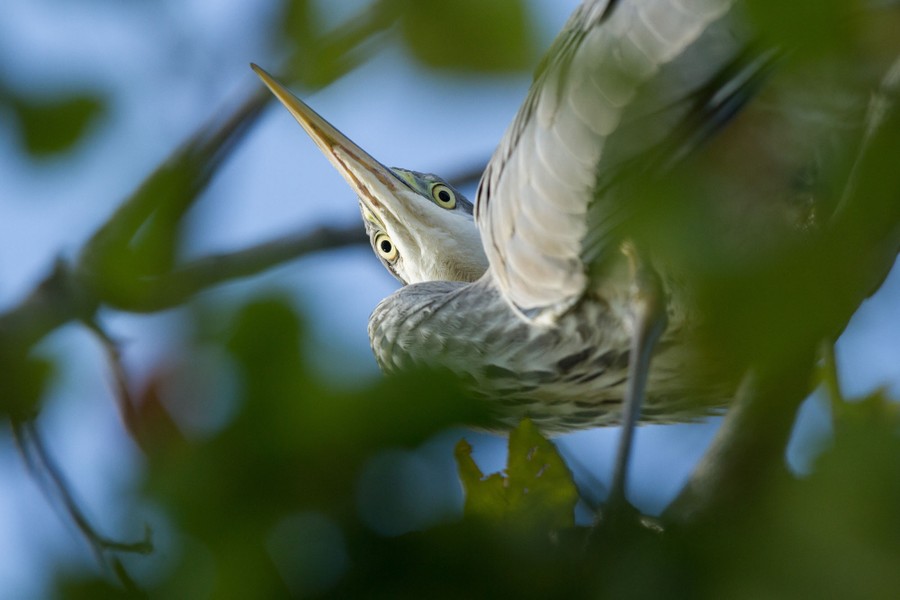 Read moreFish-eye view: Eyes bulging, the heron stared down at Joshua, and for a second Joshua stared right back. Looking up, it was easy to imagine what it might be like to be a fish, with that deadly beak about to strike. It was one of those truly serendipitous moments. Joshua had wandered down to the Pen Ponds in Richmond Park, London, home to a handful of grey herons. A scuffle had broken out between two males, and Joshua had watched as one heron began to chase the other around the lake, driving it off the water and into the tree Joshua was standing under. In fact, the heron landed right above his head. Seizing the moment, Joshua lifted his camera and lens off the tripod and shot up through the branches, catching the moment the heron turned its attention to him. It was, he said, "amazing to see such a common bird in a completely new way." #