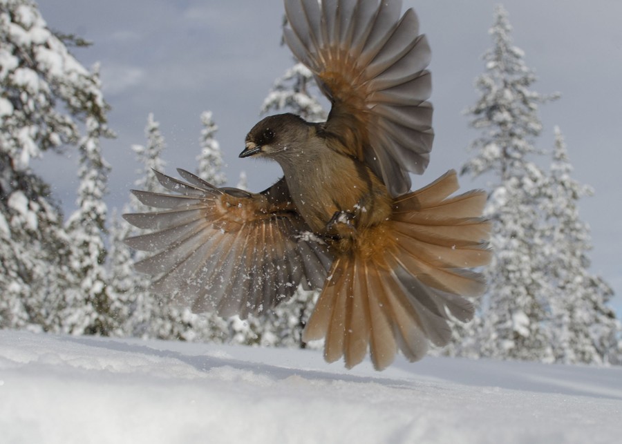 Read moreSnowbird: Cheese and sausage are what Siberian jays like—so Edwin discovered on a skiing holiday with his family in northern Sweden. Whenever they stopped for lunch, he would photograph the birds that gathered in hope of scraps. On this occasion, while his family ate their sandwiches, Edwin dug a pit in the snow deep enough to climb into. He scattered titbits of food around the edge and then waited. To his delight, the jays flew right over him, allowing him to photograph them from below and capture the full rusty colours of their undersides more clearly than he had dared hope. #