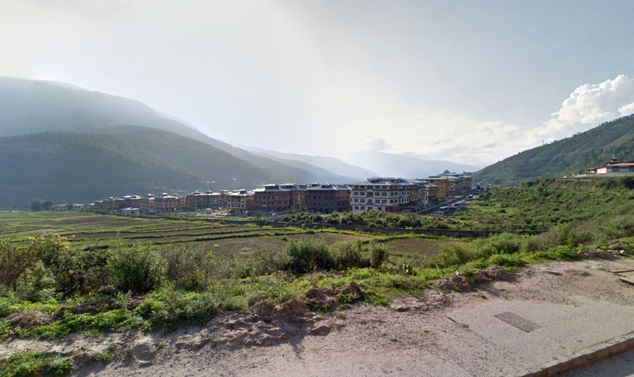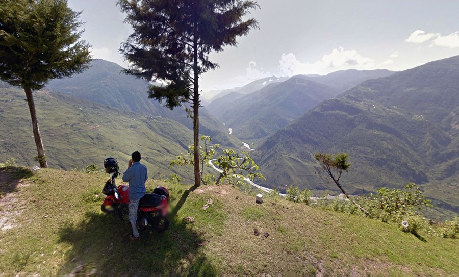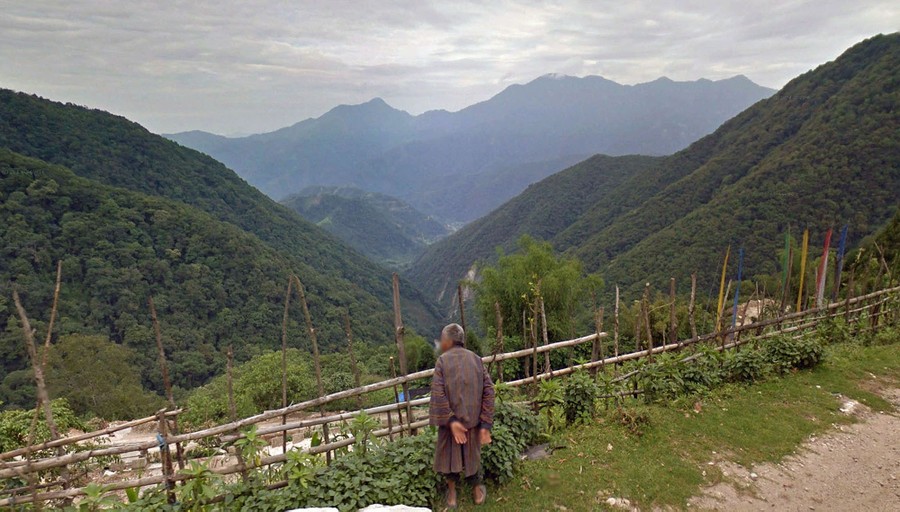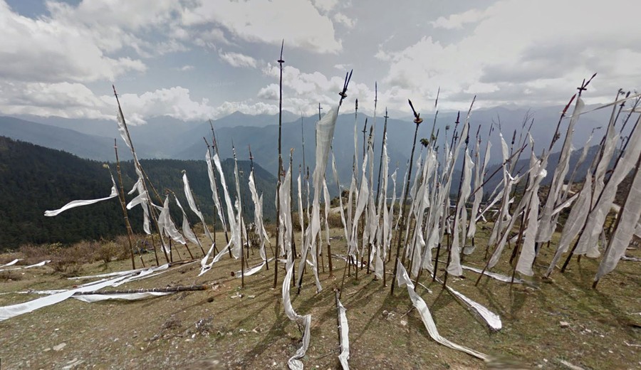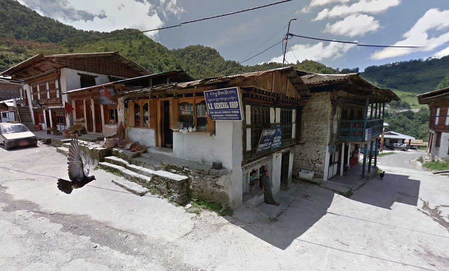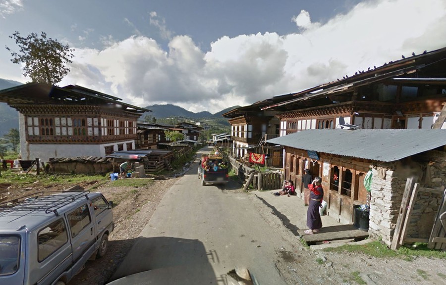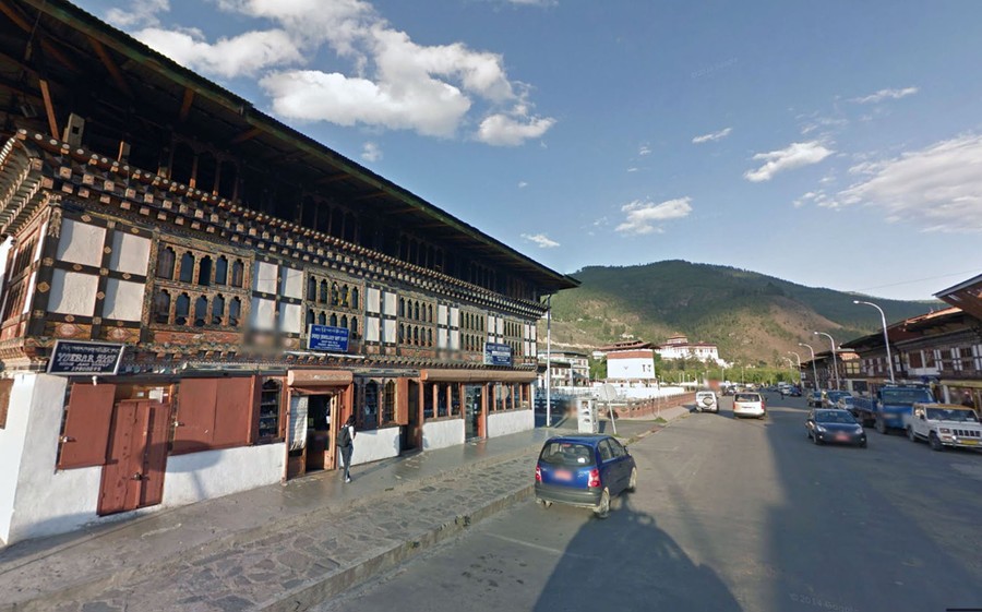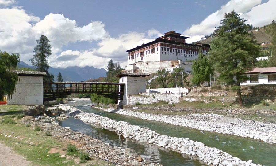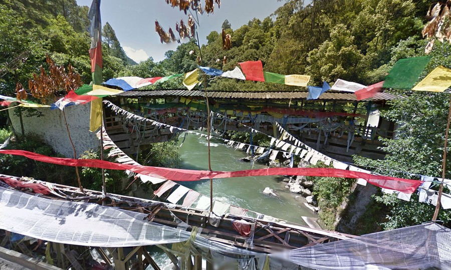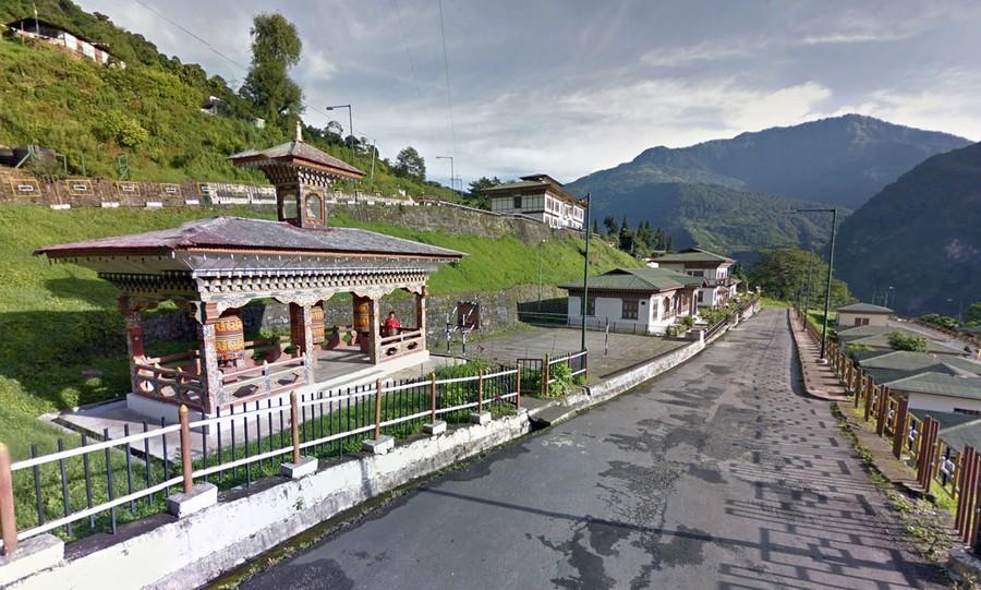 Google's Street View vans continue to cover countries around the world, stitching together panoramas and allowing armchair travelers to hit the road. A few years ago, I posted "A Trip to Bhutan," a photo essay made up largely of the agency photographer's shots, which had a great reception. Today I'd like to show you a few views of Bhutan's remarkable landscape and colorful architecture, courtesy of Google's Street View team (with links in the captions, so you can explore more on your own). Covering most of the roads in mountainous country, some of the shots were taken at elevations approaching 4,000 meters (13,129 feet) above sea level.