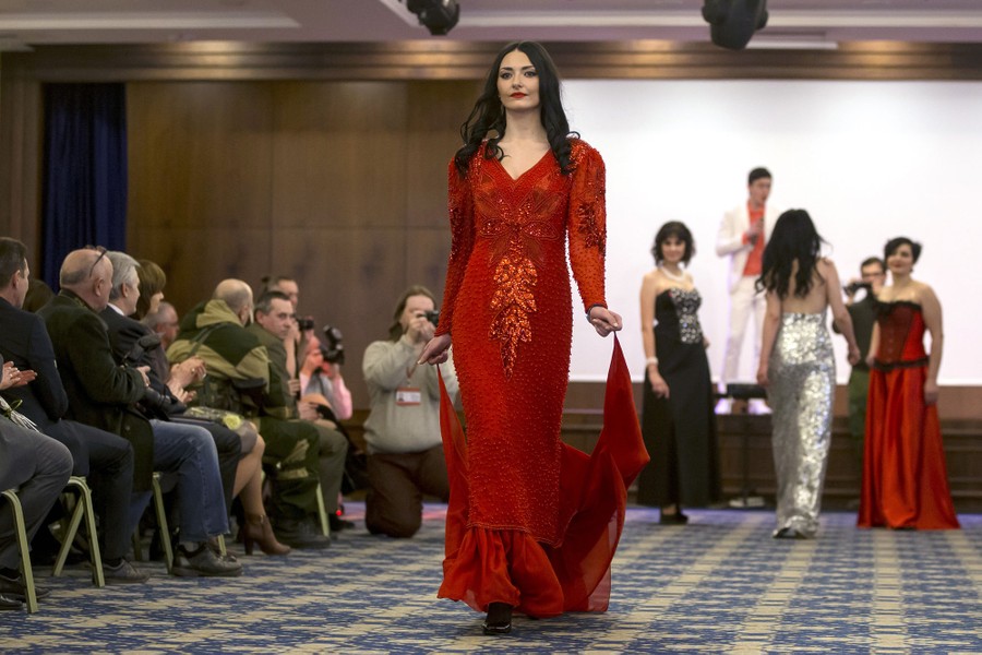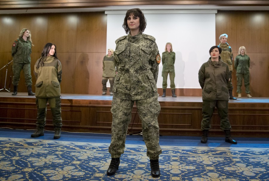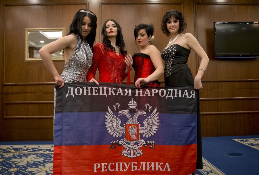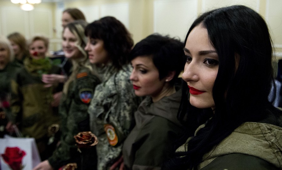 Over the weekend in Ukraine's breakaway republic of Donetsk, self-proclaimed authorities celebrated International Women's Day by holding a beauty pageant. The contestants were all female soldiers fighting with pro-Russian rebels in eastern Ukraine. Presenting portraits of themselves, and modeling in both dresses and military fatigues, the women were later awarded flowers and gifts.