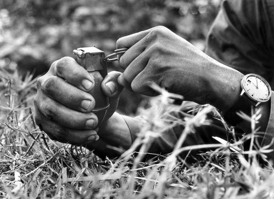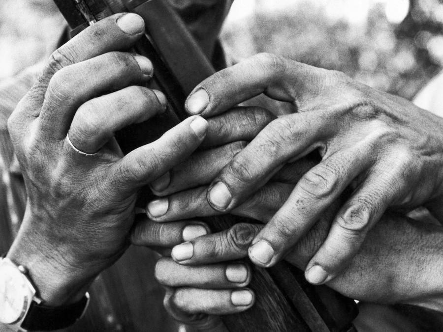 Read moreHands in utter confusion belong to Vietnamese civilians attempting to assemble a carbine (rifle) in August 1968, as part of the government of South Vietnam's civilian mobilization program where civilians learn how to protect themselves from attacking communists. #