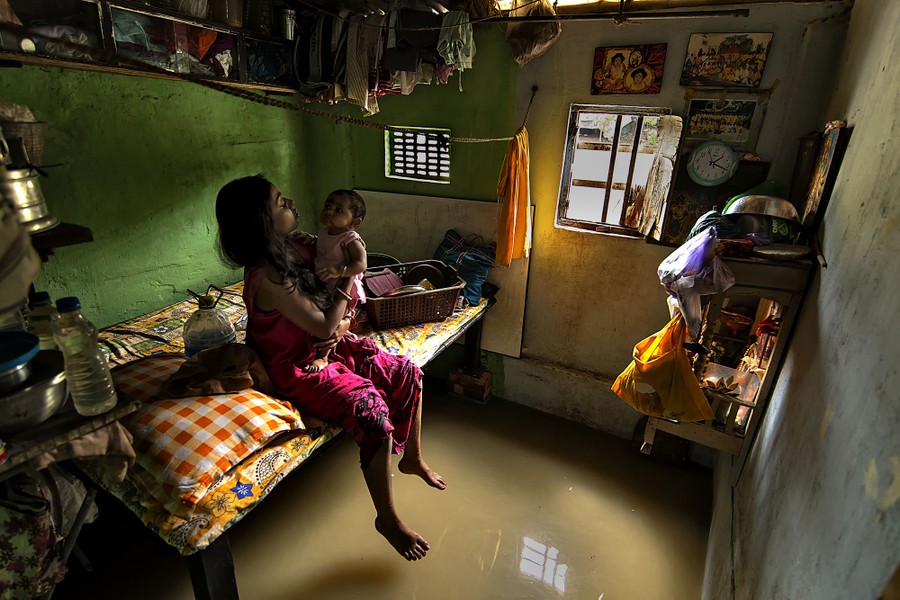 Read moreWinner: People. A mother plays with her child in a flooded room, near the banks of the Ganges River, in Kolkata, West Bengal, India. Photographed by Joydeep Mukherjee #