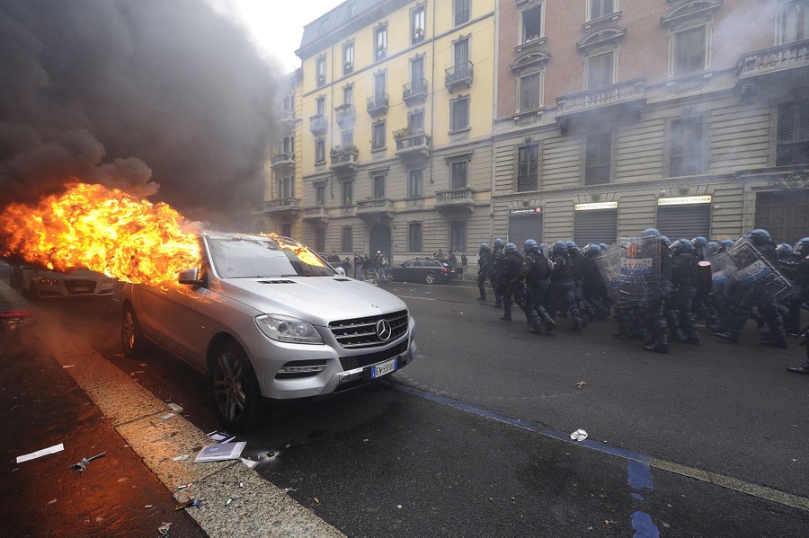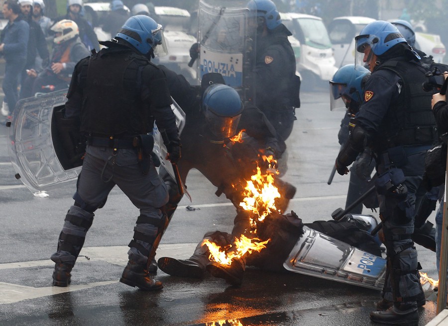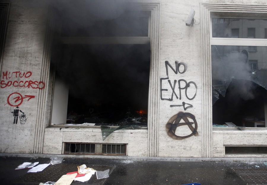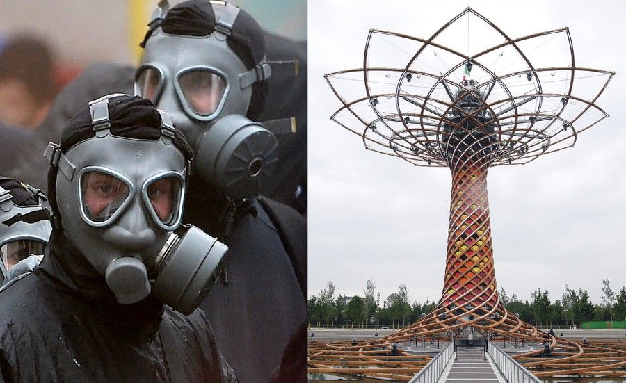 Read moreLeft: Activists wearing gas masks take part in a protest against Expo 2015 fair in Milan, Italy, on May 1, 2015. People marched against the opening of Milan's Expo 2015, torching parked cars, smashing bank and store windows and clashing with riot police in Milan. Right: The "Tree of life" at Expo 2015 in Milan on May 1, 2015. Italy opened the Milan Expo on Friday, torn between hopes that the showcase of global culture and technology will cheer up a gloomy national mood and fears that it will be overshadowed by scandal, delays and street protests. #