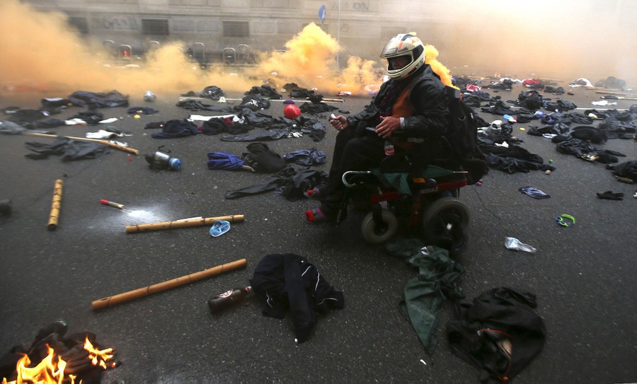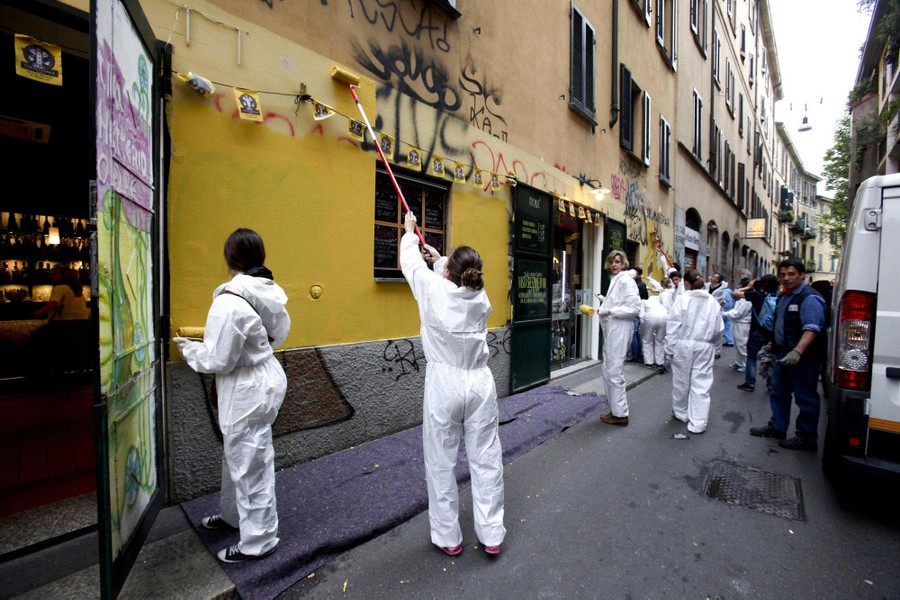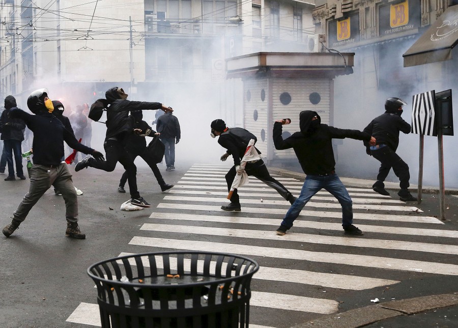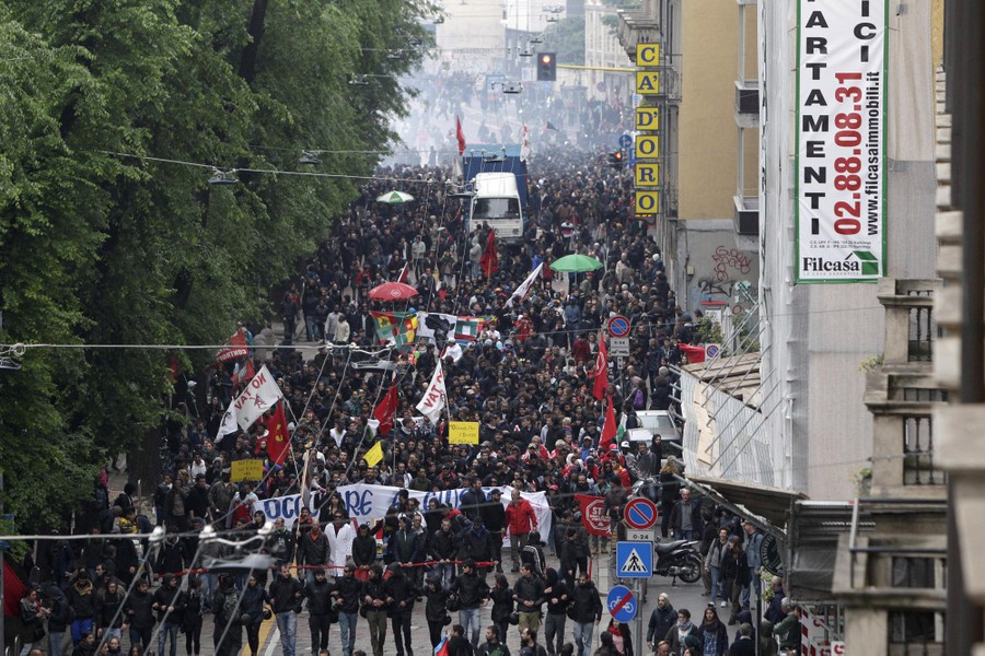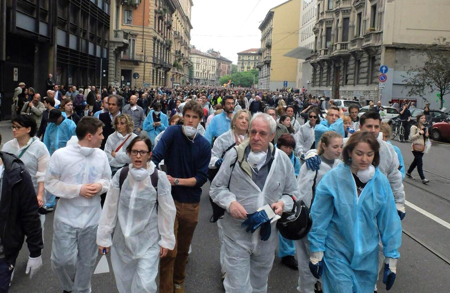 Read moreDemonstrators march in Milan on May 3, 2015 during a rally to protest the violence that left much of downtown trashed on May Day. Hundreds of the marchers removed graffiti and helped repair other damage wreaked by protesters who rampaged through downtown two days earlier while VIPs were inaugurating Expo 2015. #