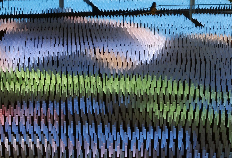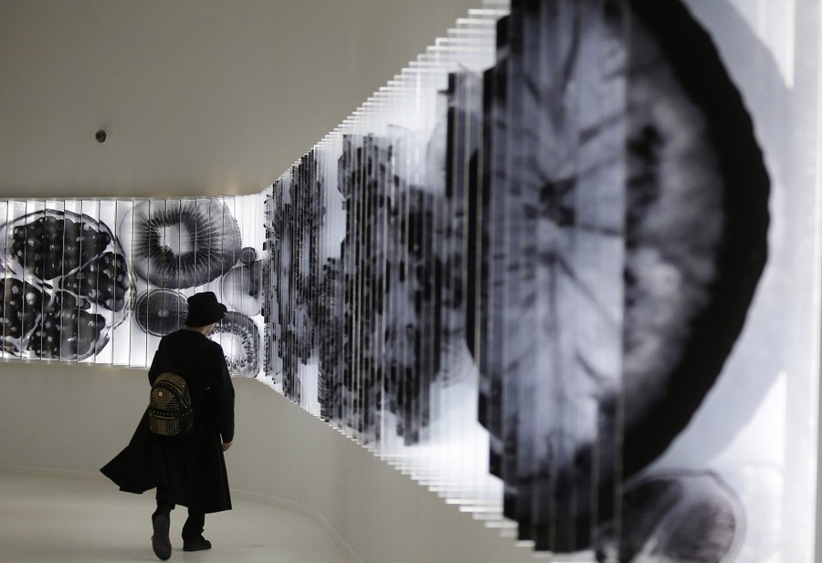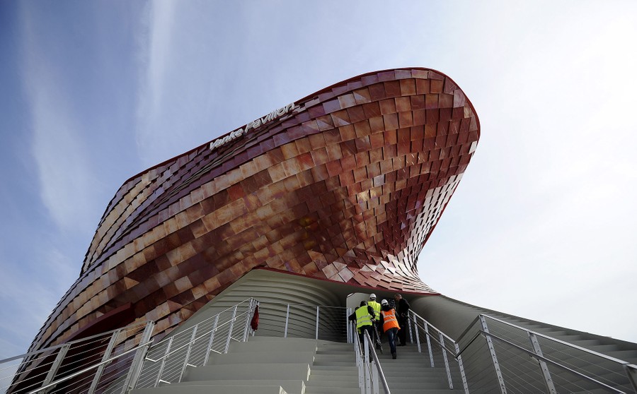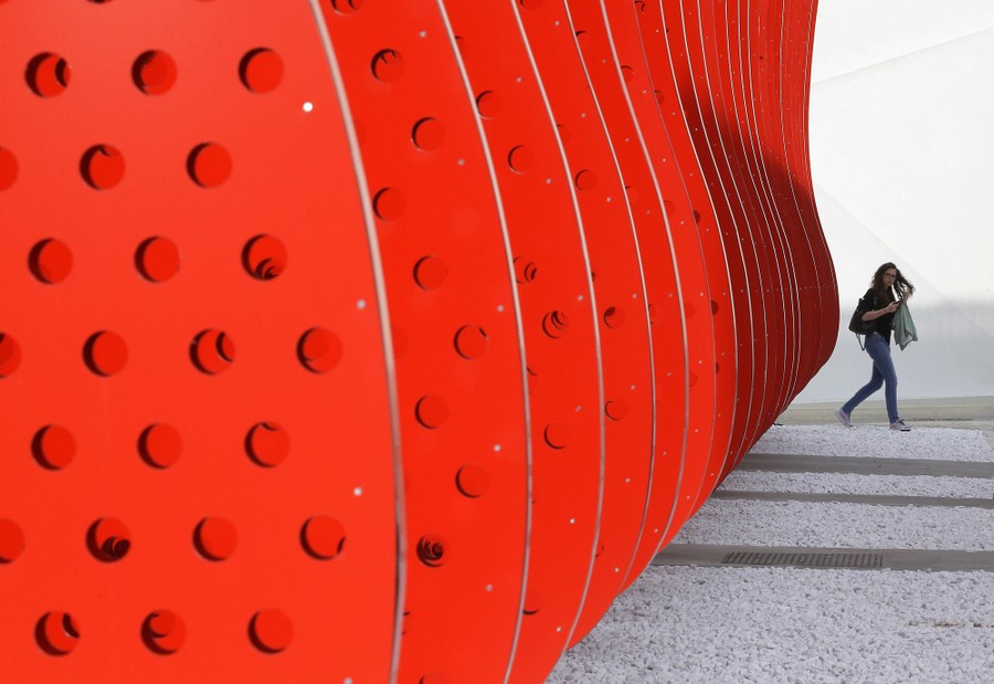 Read moreA visitor walks inside the Republic of Korea pavilion at Expo 2015. South Korea's theme is “You Are What You Eat”. The external design based on the Korean "Moon Jar”, a traditional pottery vessel in the shape of the full moon. #